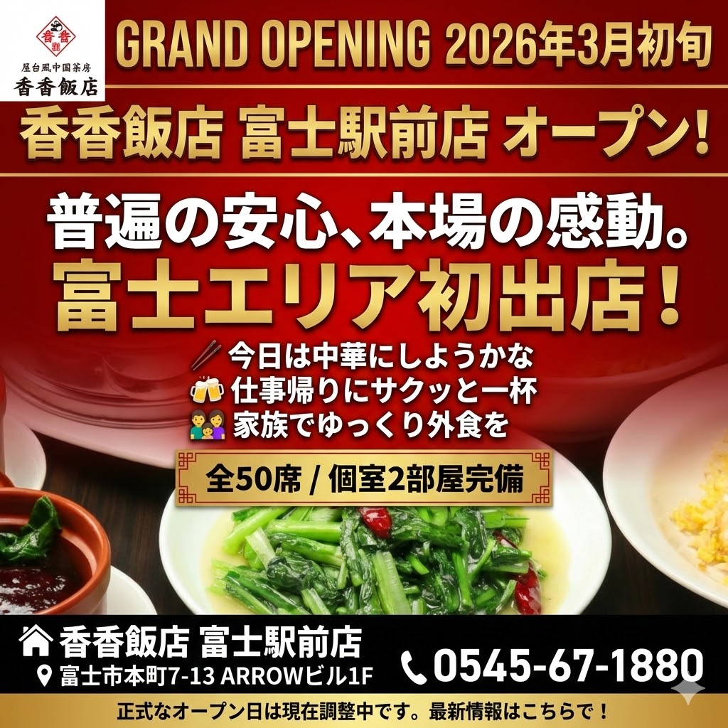 「香香飯店(シャンシャンハンテン) 富士駅前店」がグランドオープンします!